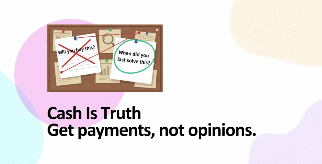 Here’s the trap: You ask friends and potential customers, “Do you like this idea?” They say yes. You think you have validation. You don’t. You have false positives